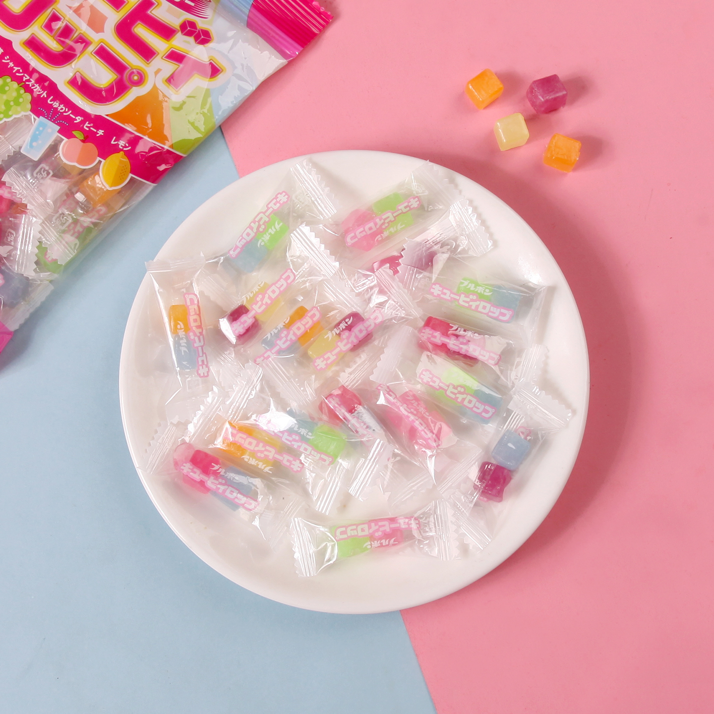 日本进口bourbon布尔本水果糖7味波路梦彩色方块造型果汁硬糖喜糖