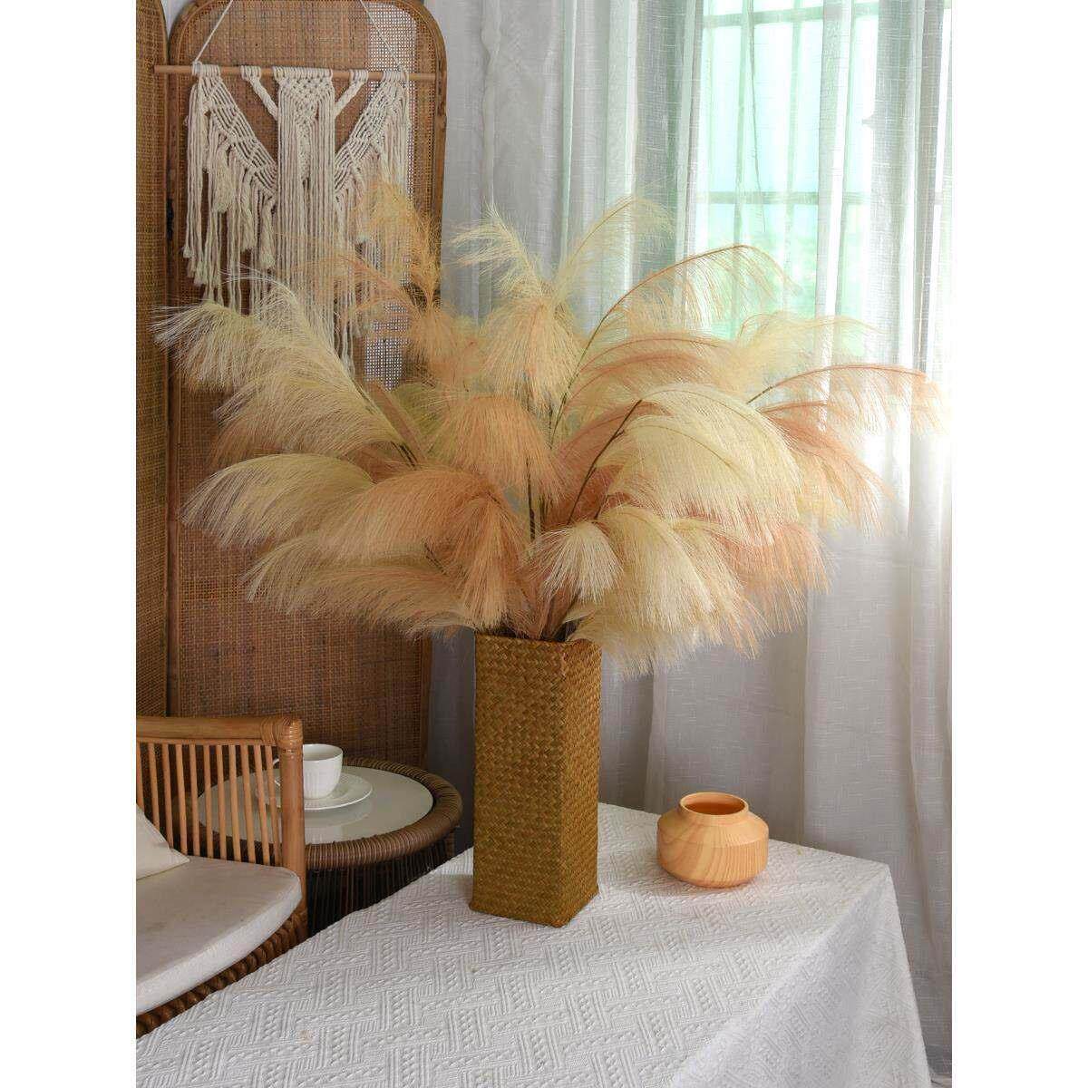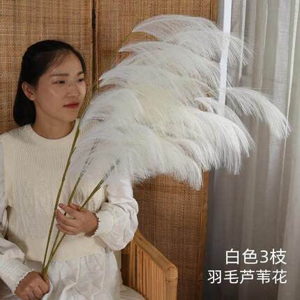 彷真芦苇花假花干花粉色大蒲苇羽毛花束客厅室内摆件橱窗落地装饰
