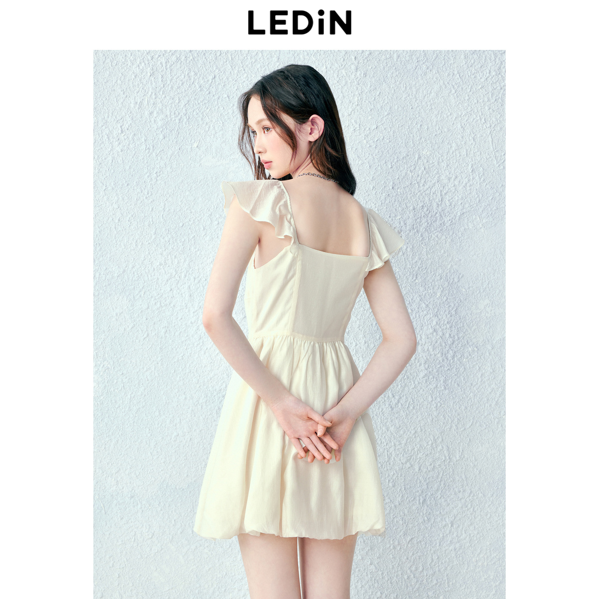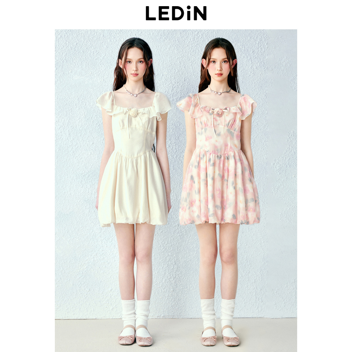 乐町纯欲风花苞连衣裙夏季新款油画碎花裙小飞袖打卡连衣裙