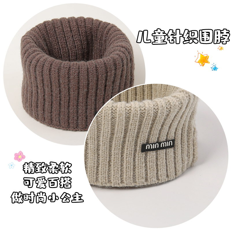 儿童纯色针织围脖男女童秋冬保暖加厚套头围巾宝宝防风毛线脖套