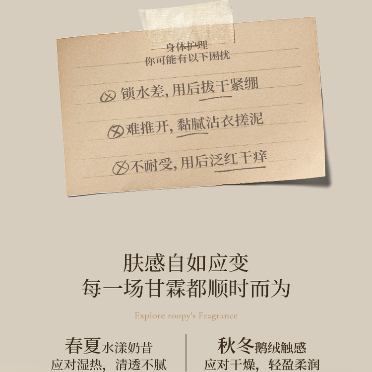 正品roopy馥奇香氛身体乳润培淡雅留香保湿滋润香体美肤乳液250ml