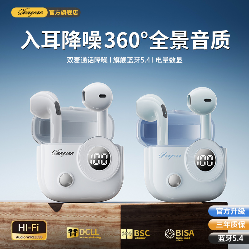 山进数数显降噪无线蓝牙耳机入耳式降噪高音质颜值游戏耳机长续航