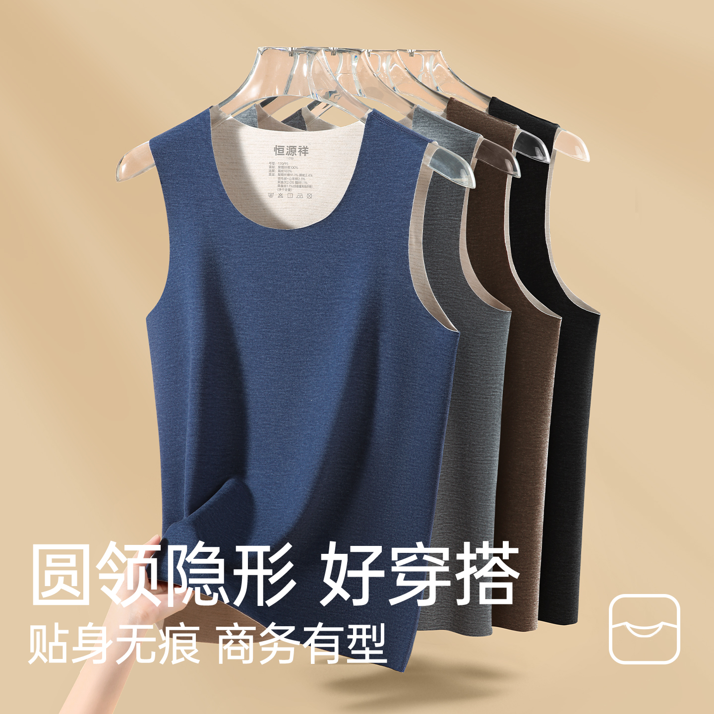 恒源祥冬季保暖背心男士加绒无痕发热内穿打底衫内衣单件上衣马甲