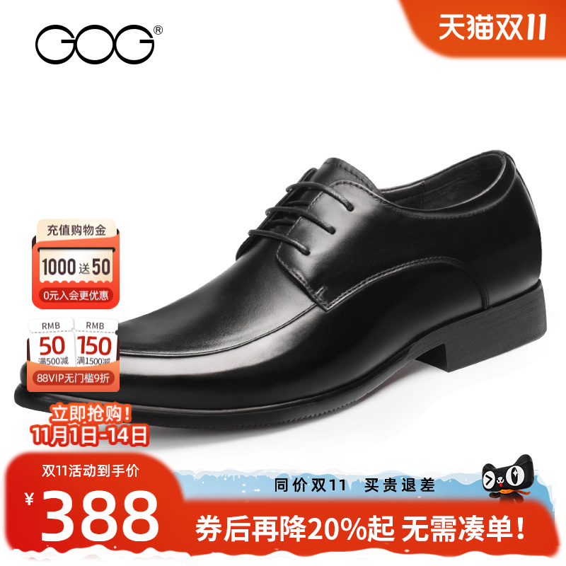 高哥增高鞋男新款真皮男鞋子商务尖头新郎婚鞋男士内增高正装皮鞋