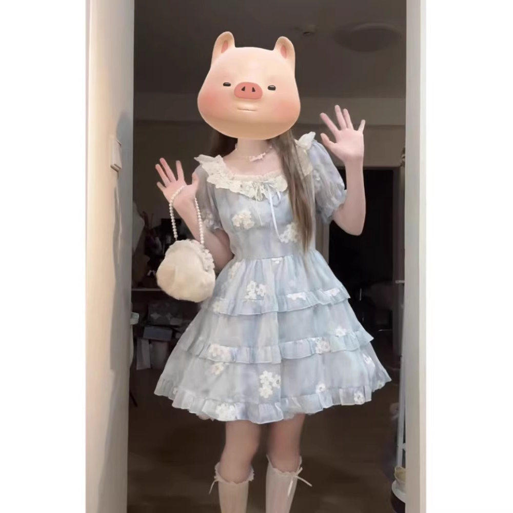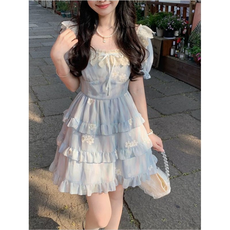 女大童法式连衣裙夏季初中高中学生小个子超仙氛围感甜美碎花裙子