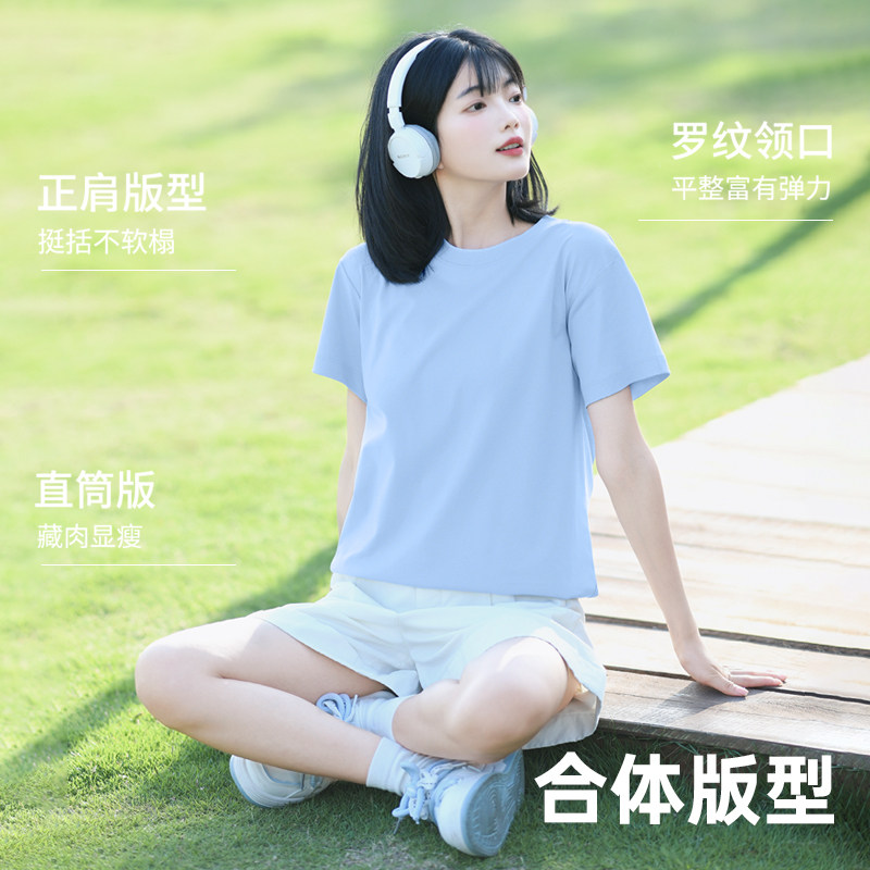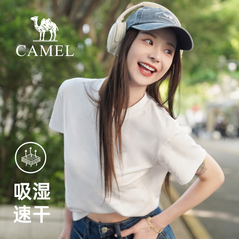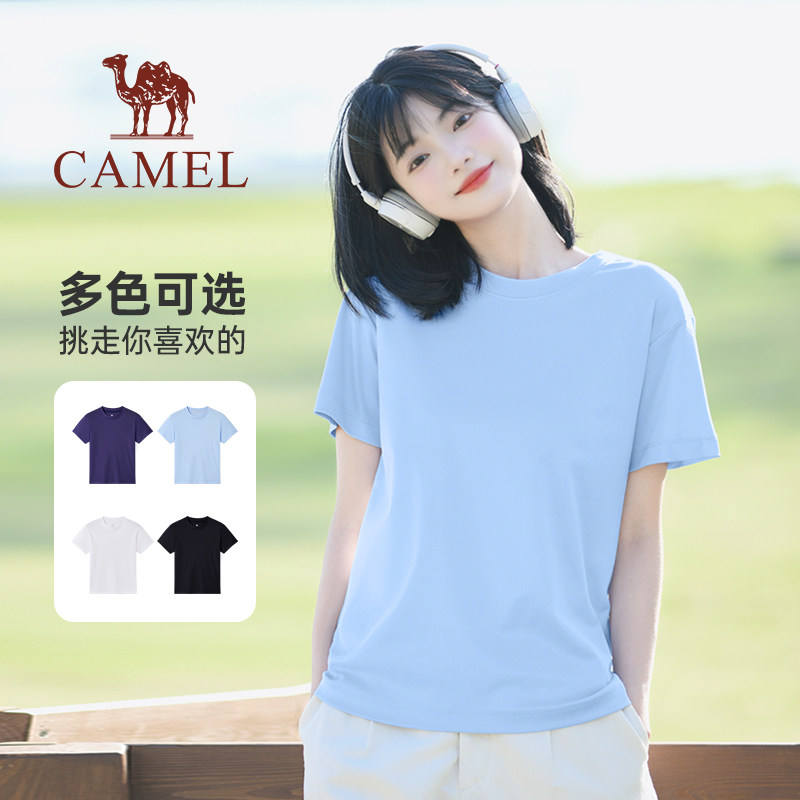 骆驼女装纯棉t恤2025新款夏季直筒正肩短袖冰感透气休闲百搭T恤女
