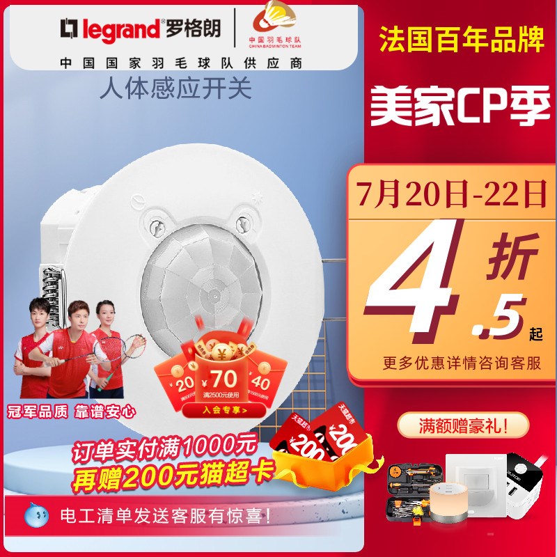 罗格朗开关插座面板莹悦顶装式红外智能人体感应开关可调光线延时
