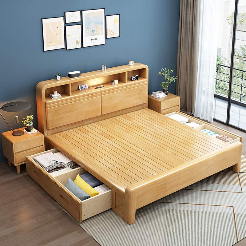 北欧全实木床1.8米双人床小户型家用现代简约主卧1.5婚床民宿风床