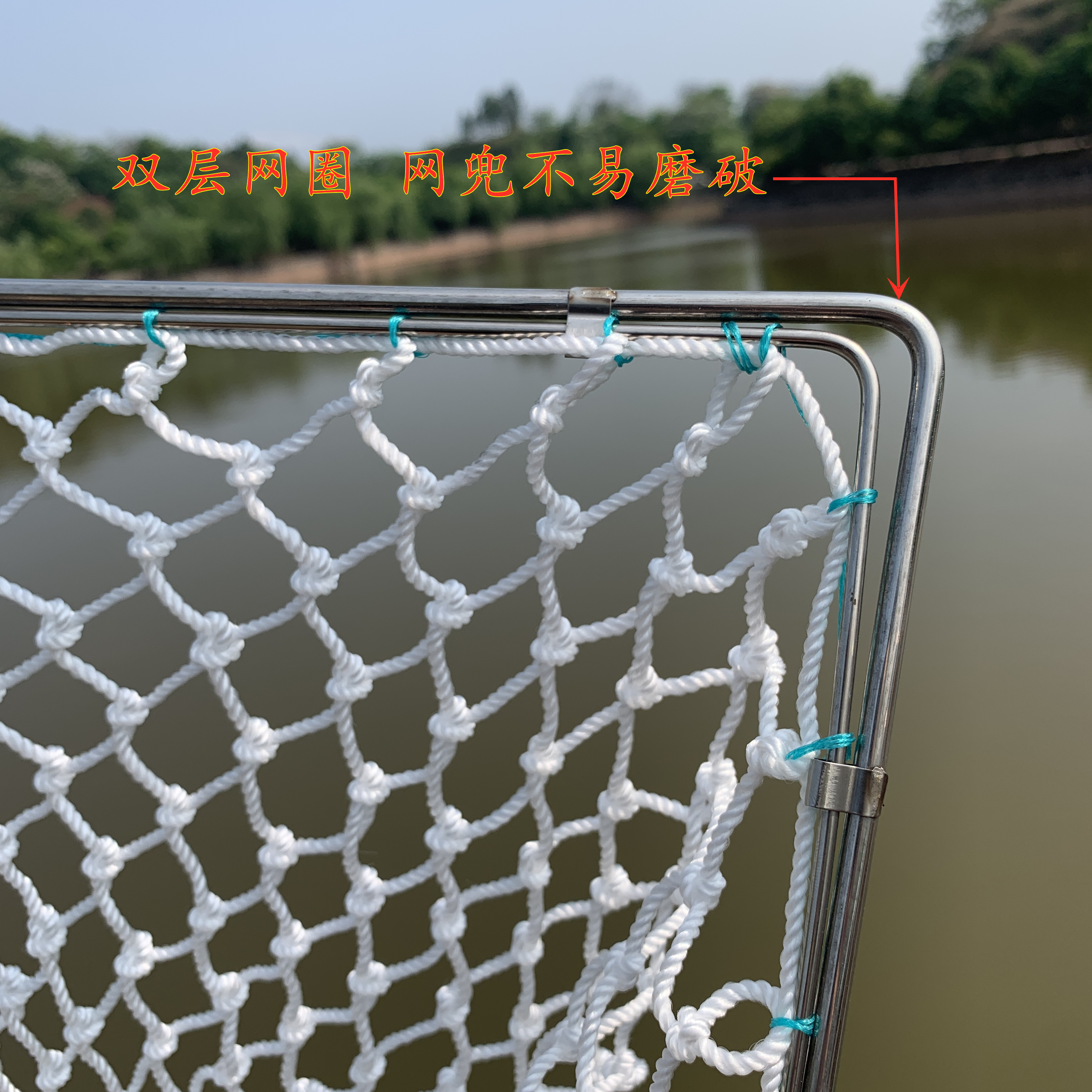 不锈钢实心一体抄网手工编织网兜棉线不伤鱼抓鸡鸭猎物网轻便渔具