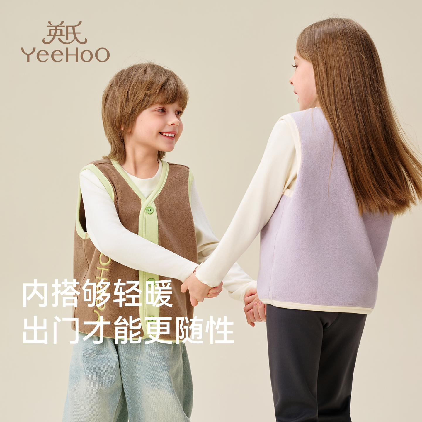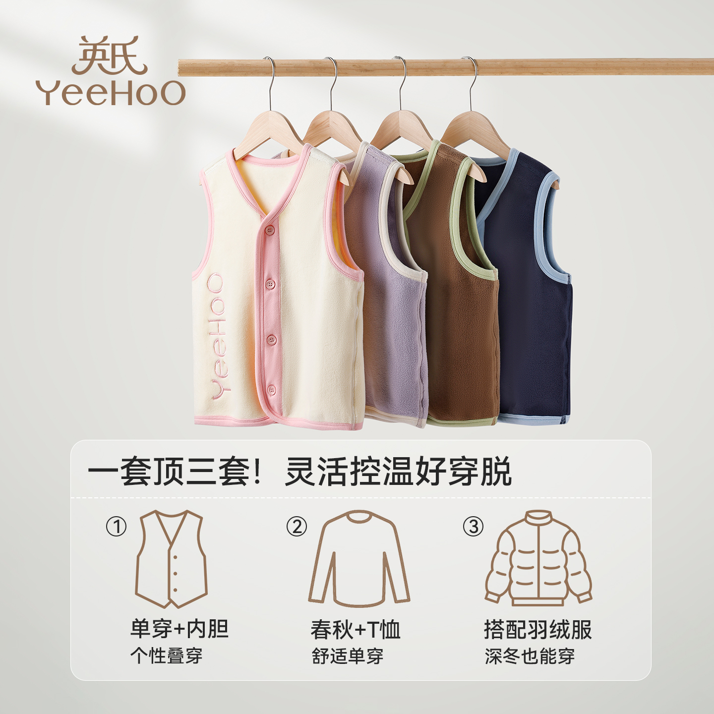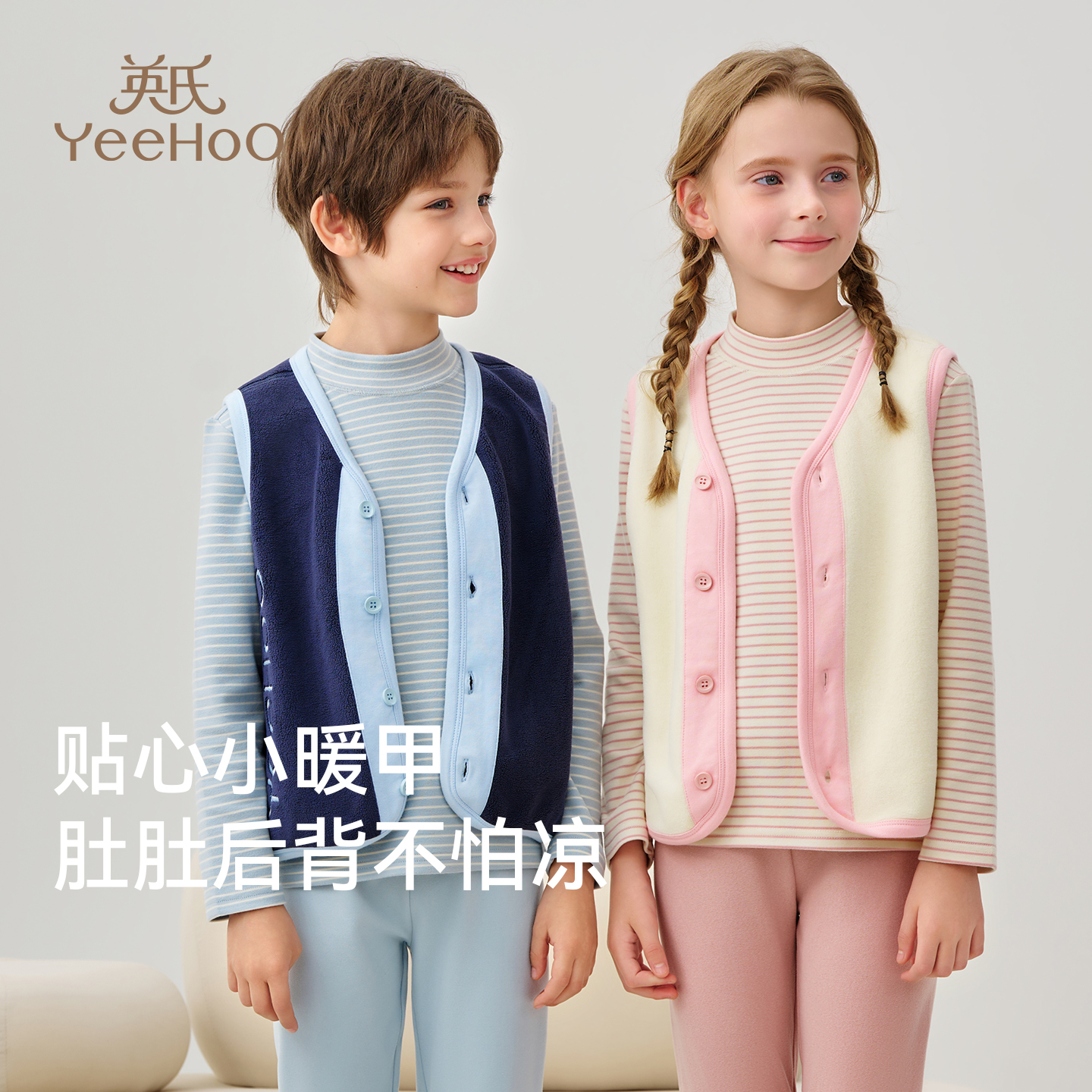 英氏女童背心儿童内外穿保暖马甲秋冬季双面磨毛坎肩男童撞色上衣