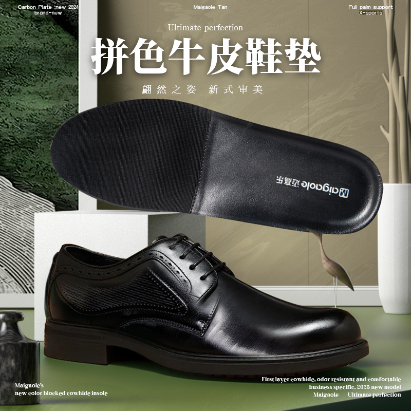 迈高乐夏季透气牛皮鞋垫男软底舒适吸汗中药防臭久站皮鞋真皮鞋垫
