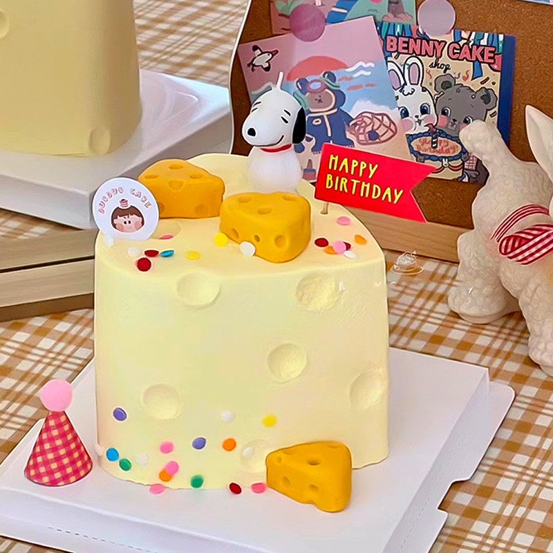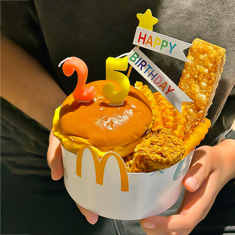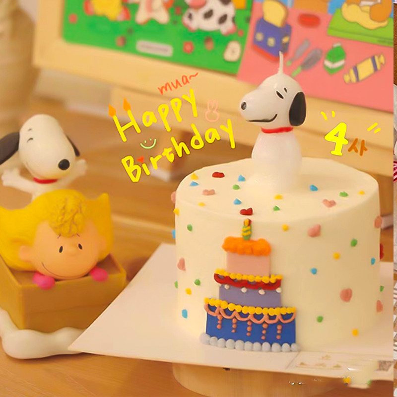 韩系风汉堡生日快乐主题装饰插件简约搞怪复古创意狗狗史努比蜡烛