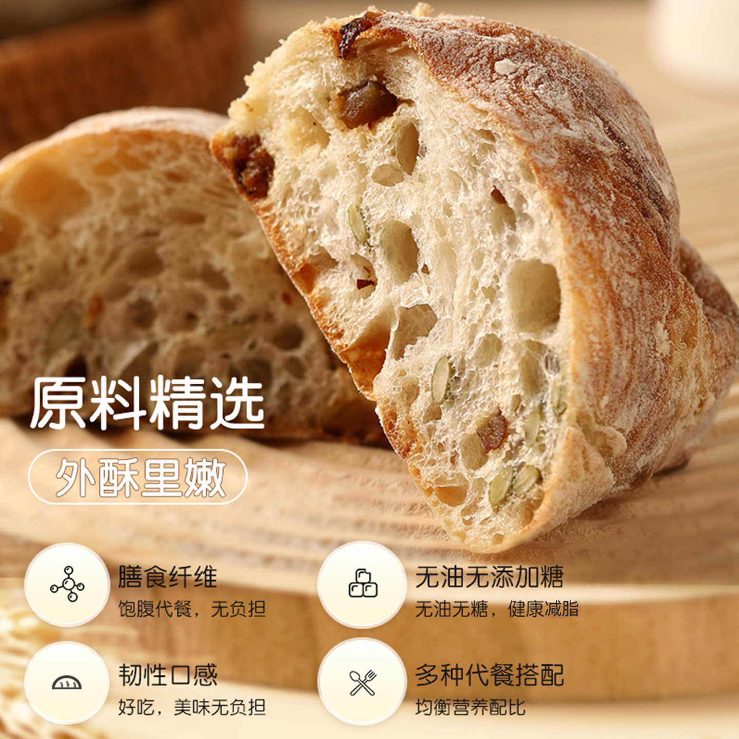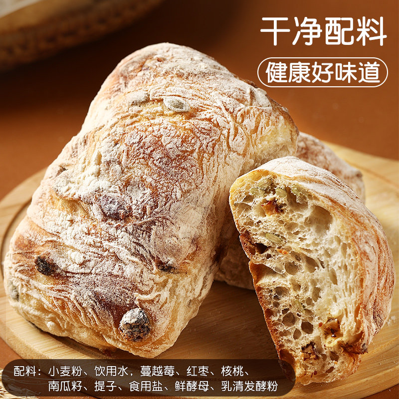 良禾坚果面包现做恰巴塔营养早餐食品小麦面包贝果粗粮坚果小欧包