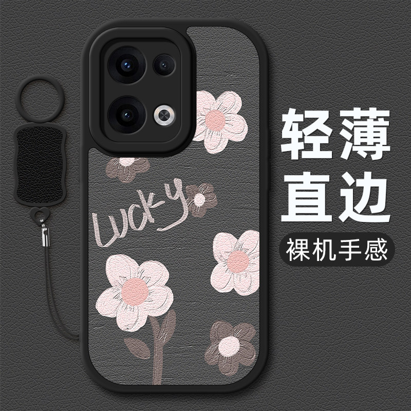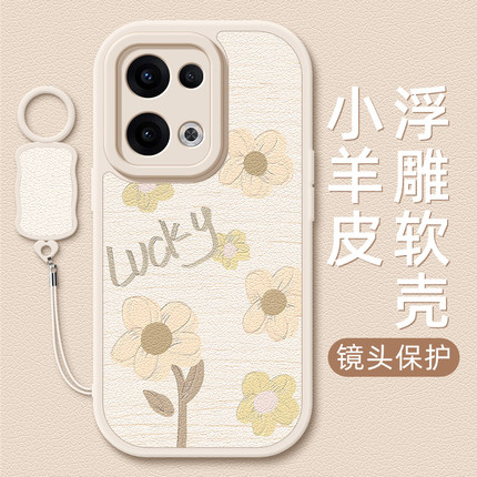 油画花朵适用opporeno14手机壳Reno13pro小羊皮reno12/10//9/8新款10pro+挂绳reno11女款硅胶卡通可爱