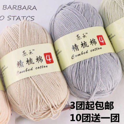 苏禾4股毛线手编材料包玩偶棉线中粗牛奶棉精梳棉钩针线宝宝线