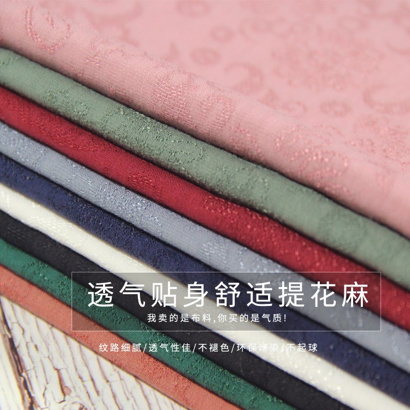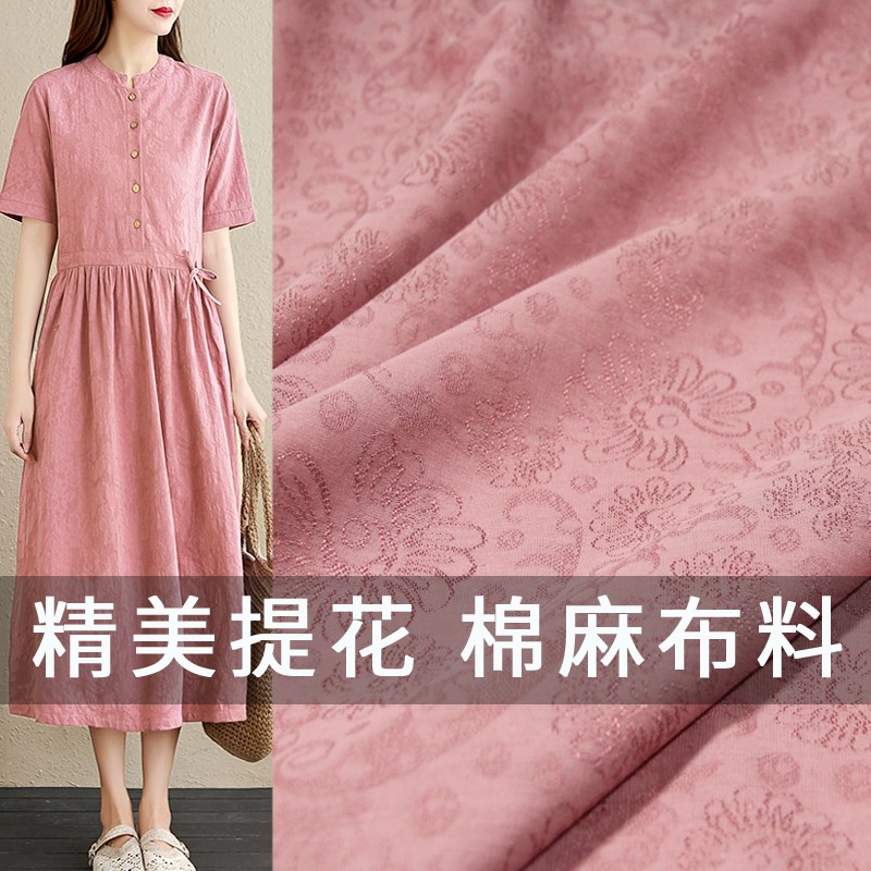 夏季棉麻提花布料薄高档亚麻布料国风复古旗袍连衣裙衬衫服装面料