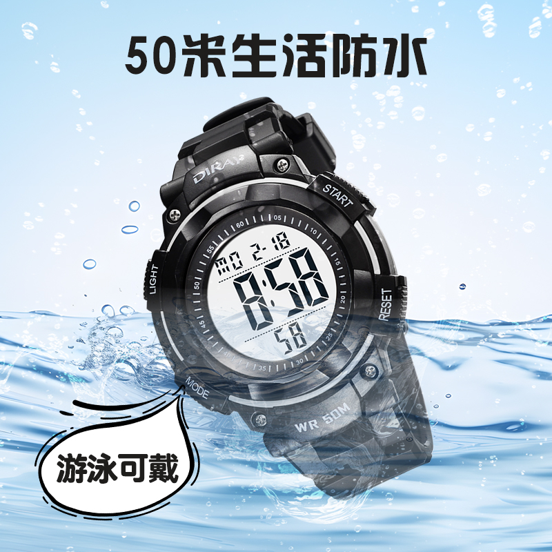 名瑞运动男学生深度防水电子手表