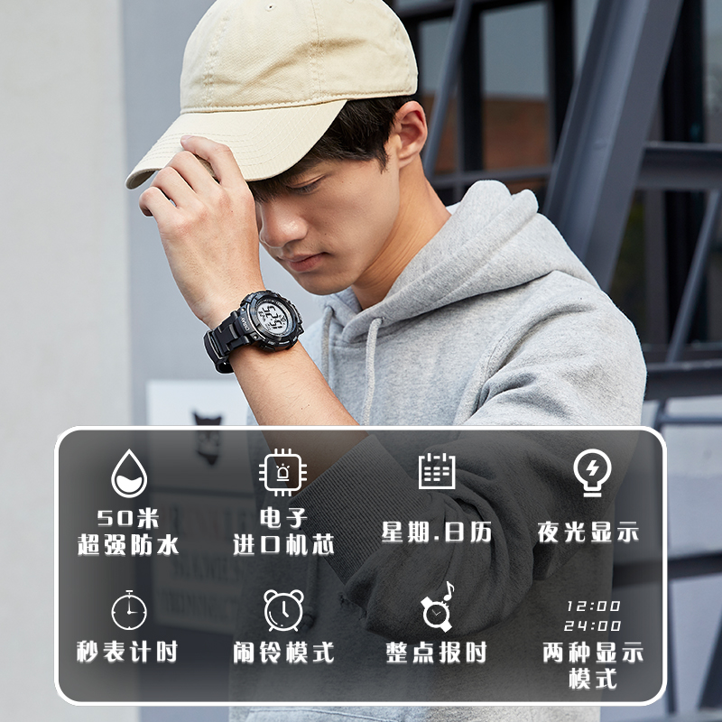 学生电子手表男款防水夜光多功能青少年运动电子表初中儿童手表男
