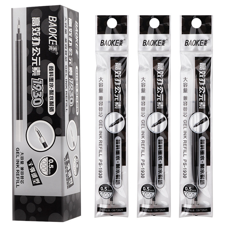 宝克1930大容量0.5mm中性笔芯签字笔0.5大容量粗水笔笔芯替芯墨蓝色水笔黑色红色蓝色笔芯简约签字
