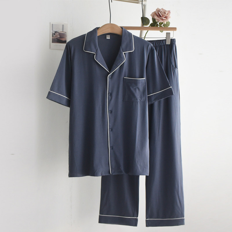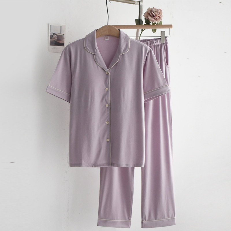 凉感睡衣男女春夏季莫代尔棉质薄款宽松短袖长裤情侣家居服套装