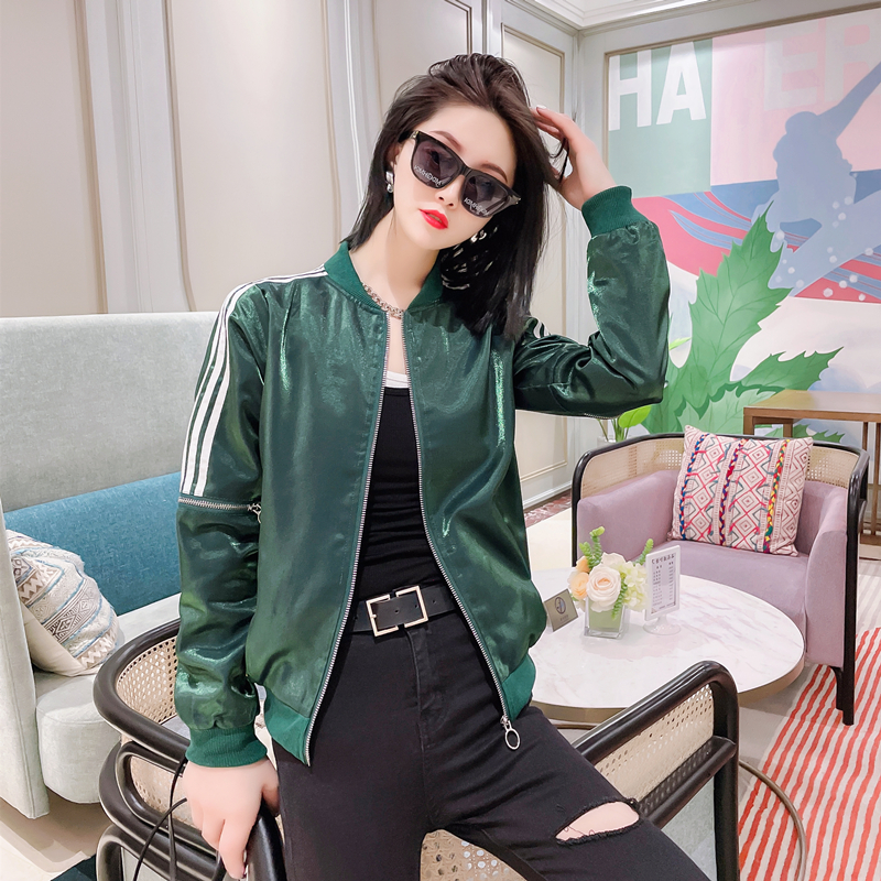 2021春秋新款棒球服女短款宽松韩版墨绿色夹克衫设计感拉链外套潮