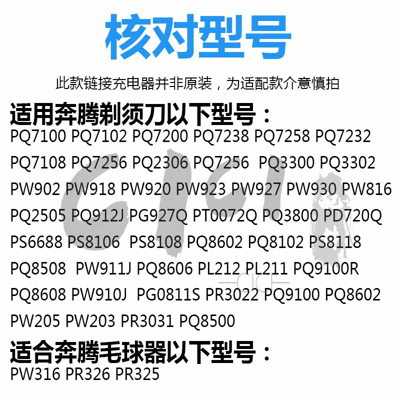奔腾剃须刀PW 750 751 906 930 927PQ3800 7100 7200充电器电源线