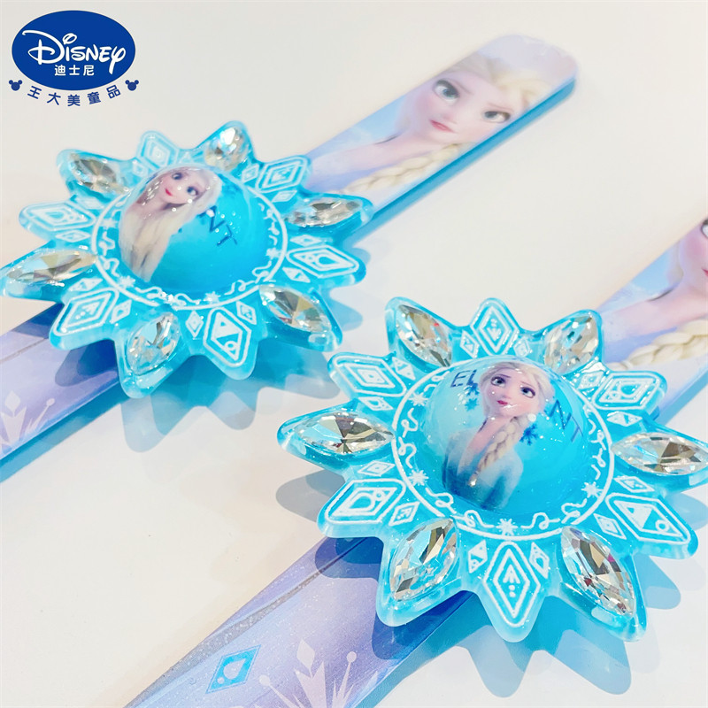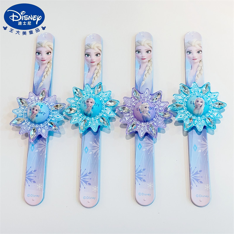 新款艾莎公主啪啪圈迪士尼正版儿童发光玩具旋转手环冰雪奇缘手镯