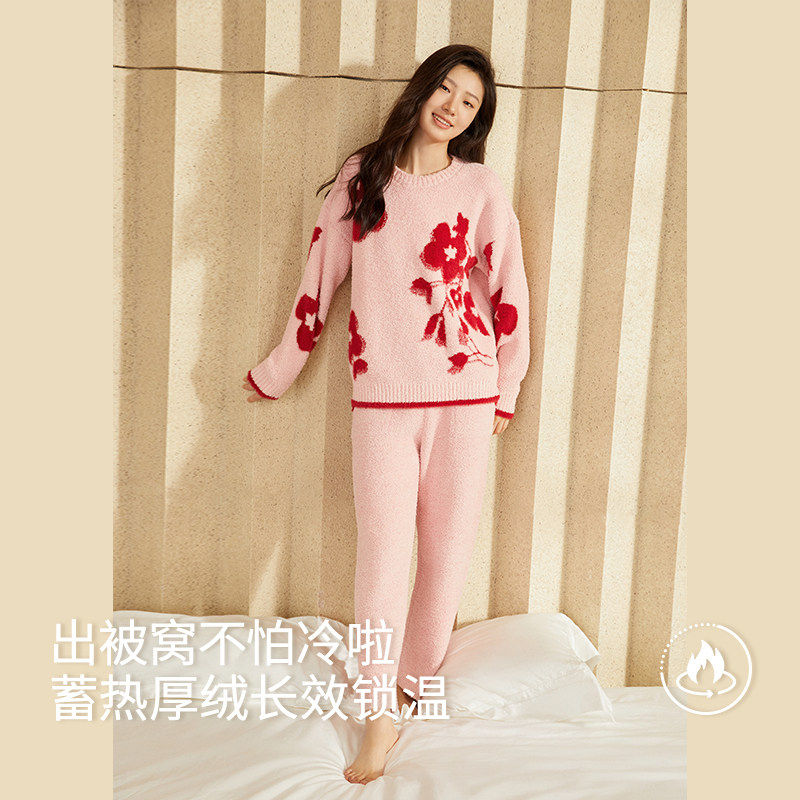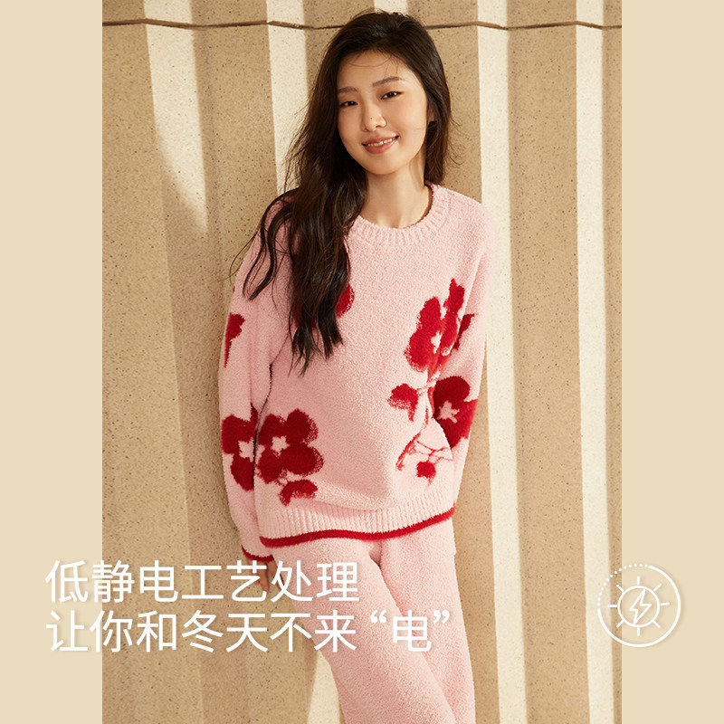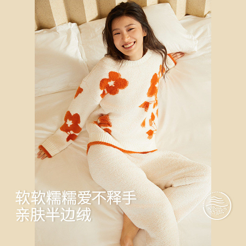YINER LIFE半边绒睡衣套装女士冬季双面提花设计柔软家居服抗静电
