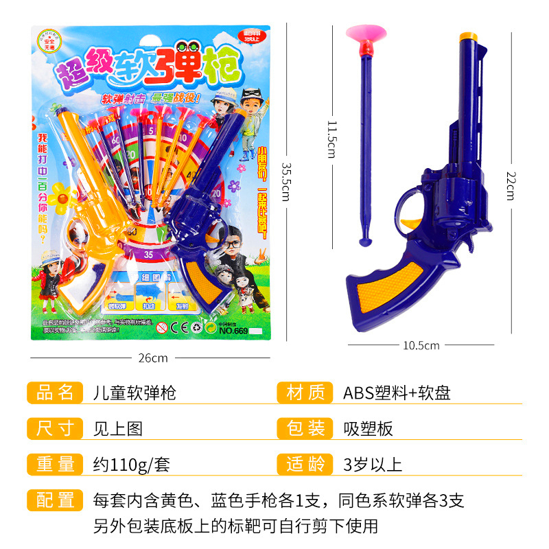 宝宝手枪软弹枪套装带子弹可发射吸盘枪儿童开学礼物男孩玩具双色