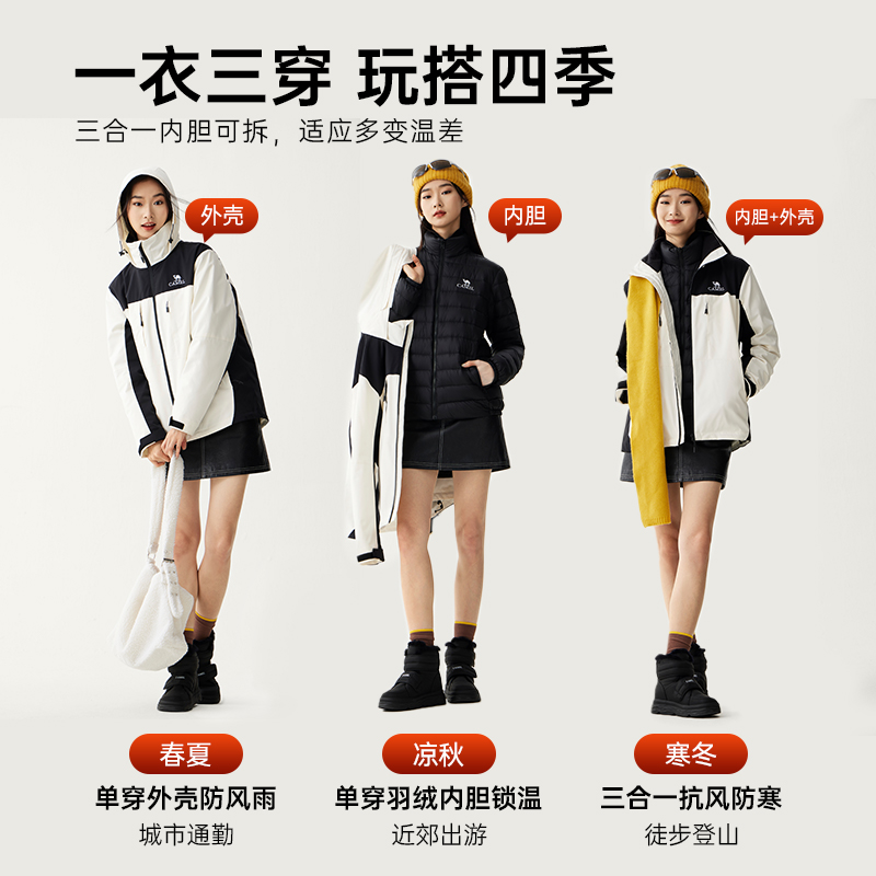 骆驼女装羽绒服2025秋冬新款防水羽绒内胆登山服宽松冲锋衣短外套