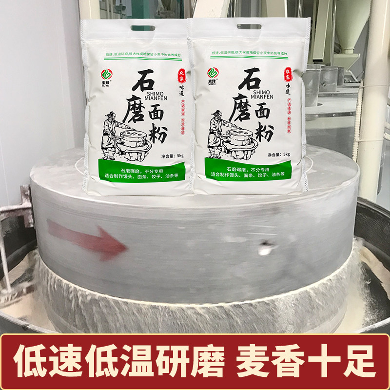 陕西石磨面粉农家自磨面粉5kg无添加剂家用中高筋小麦新国标面粉