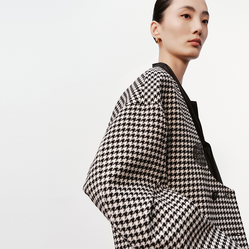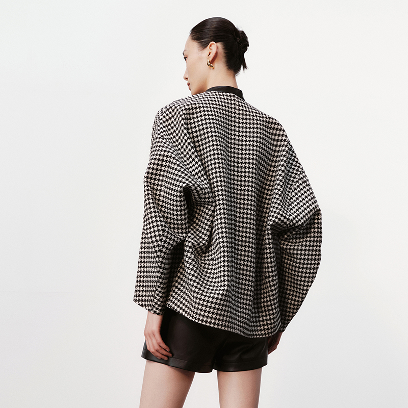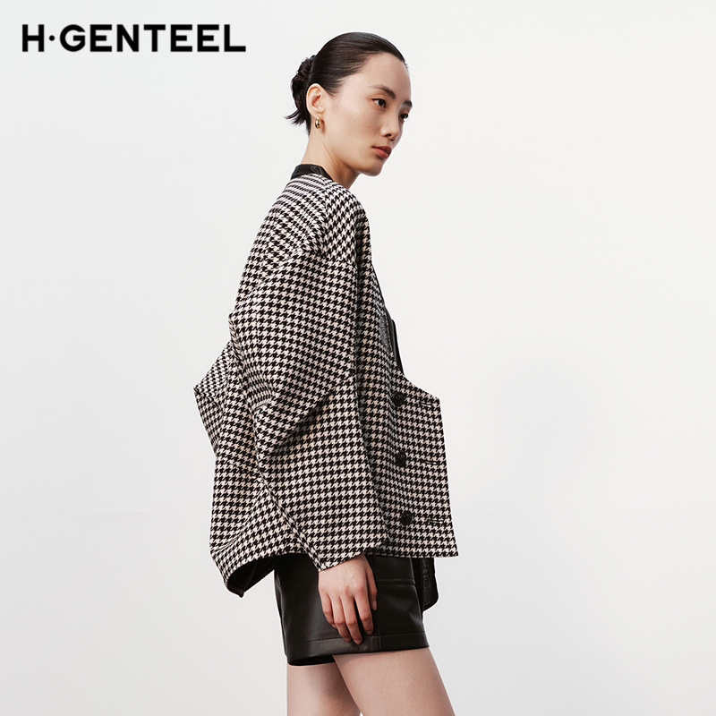 H·GENTEEL荷高新款冬装女机能宫廷风千鸟格棉羊毛短外套女