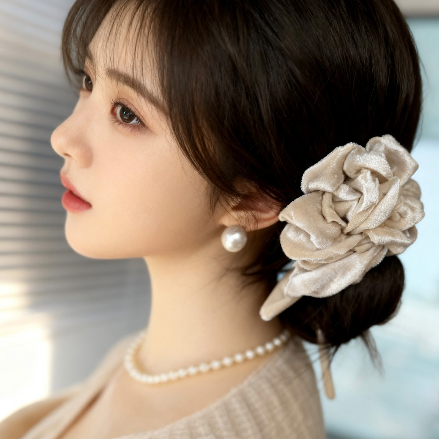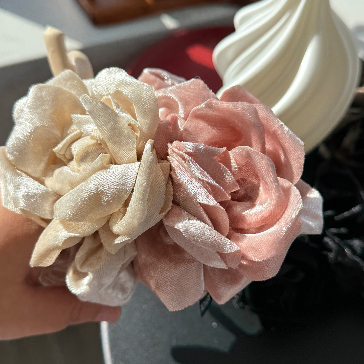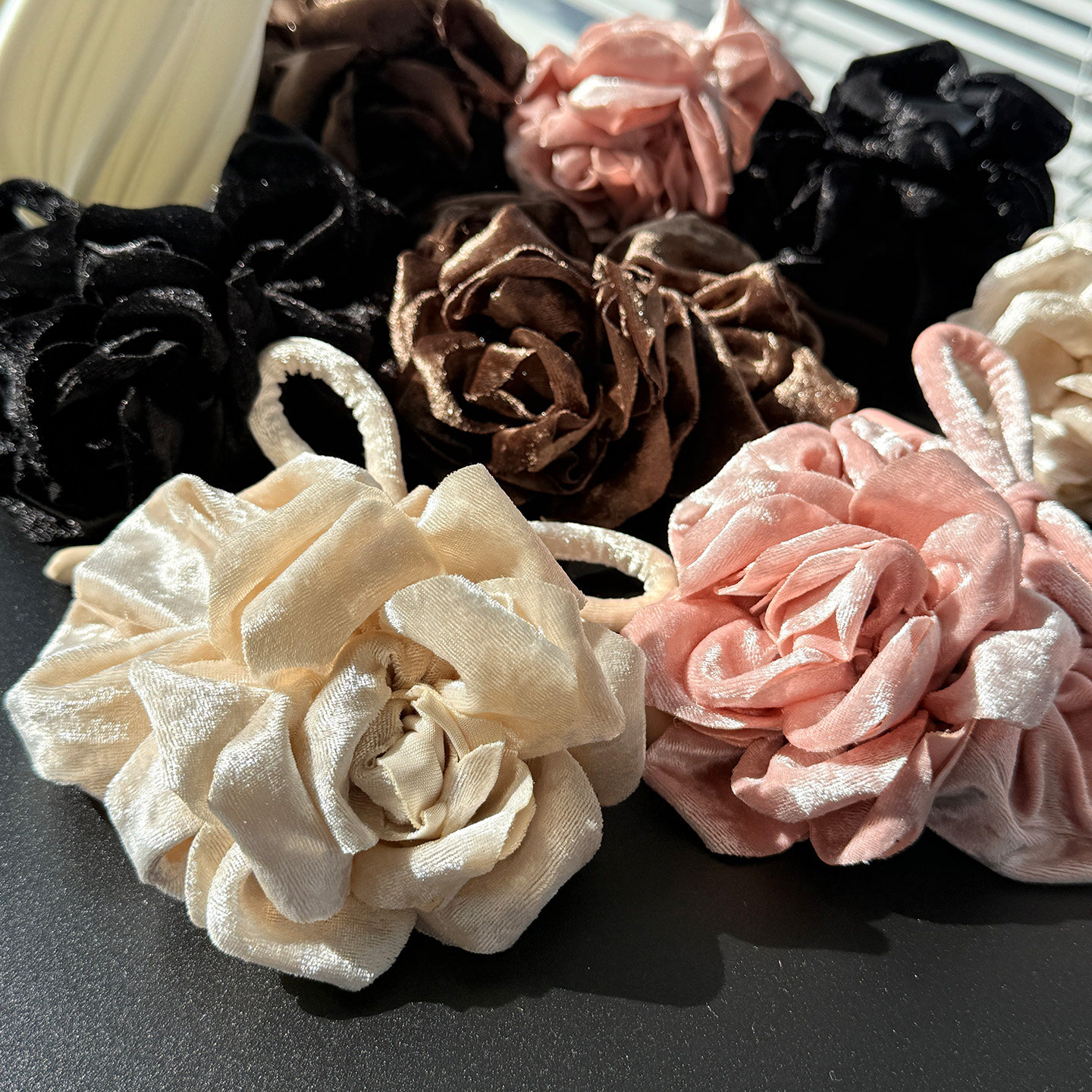 【氛围玫瑰发圈】韩国丝绒立体风格布艺抓夹大号后脑勺盘头绳秋冬