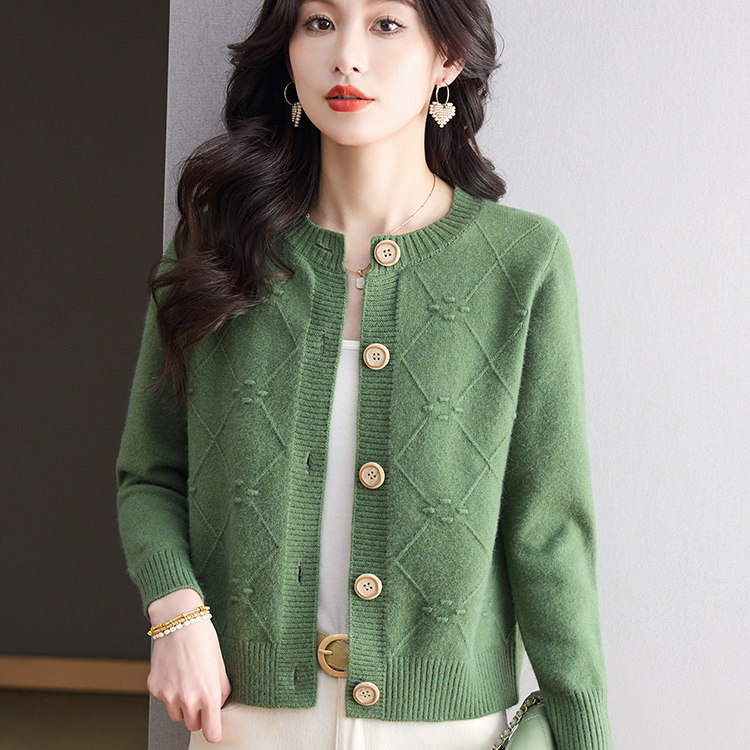慵懒羊绒毛衣小外搭短款圆领小衫外套女冬新款小个子针织开衫上衣