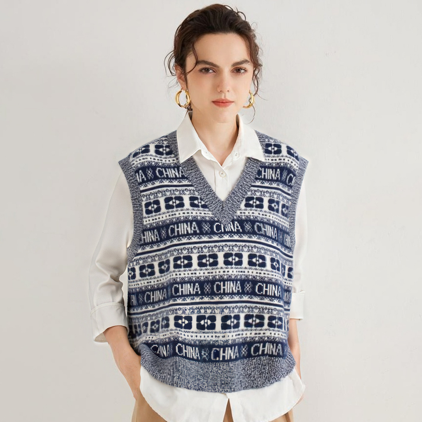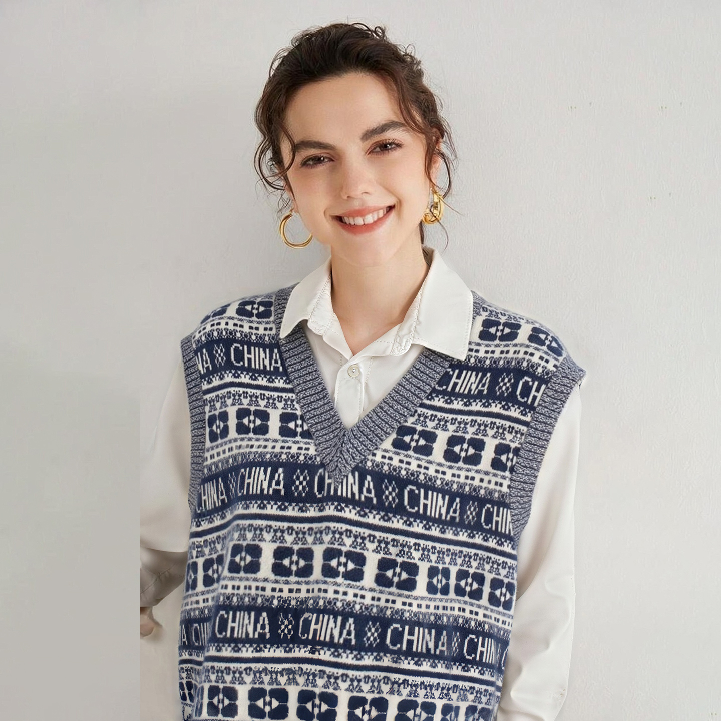 25新款100%纯山羊绒衫女V领套头宽松毛衣针织百搭打底衫马甲背心