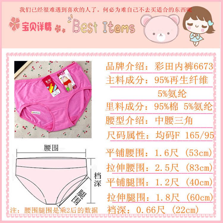 彩田莫代尔中腰女内裤三角胖mm纯色透气石墨烯双层内档女底裤6673