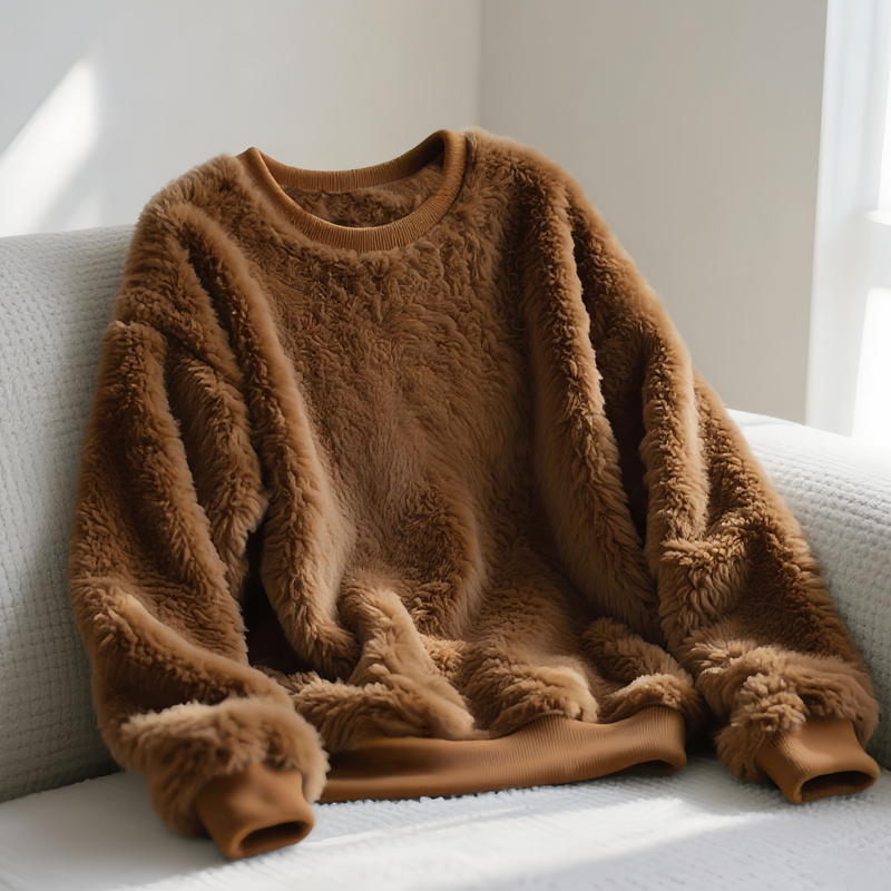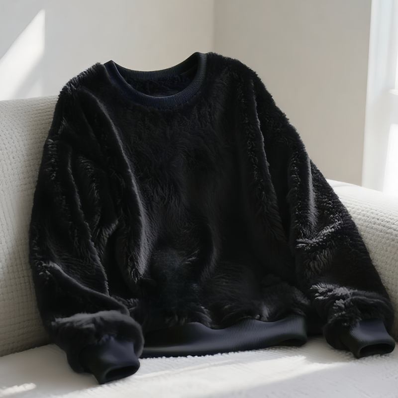 加绒加厚毛绒卫衣韩版秋冬款宽松大码套头保暖圆领男装上衣中长款