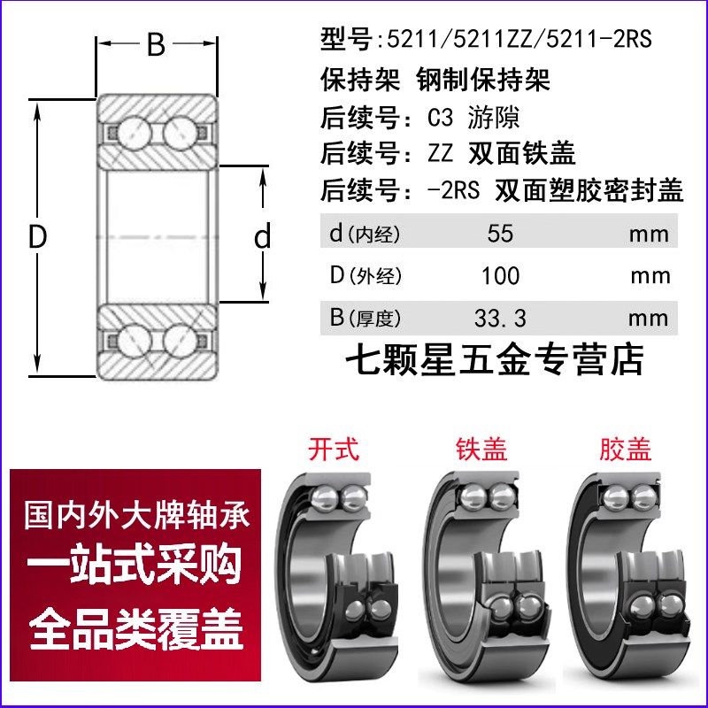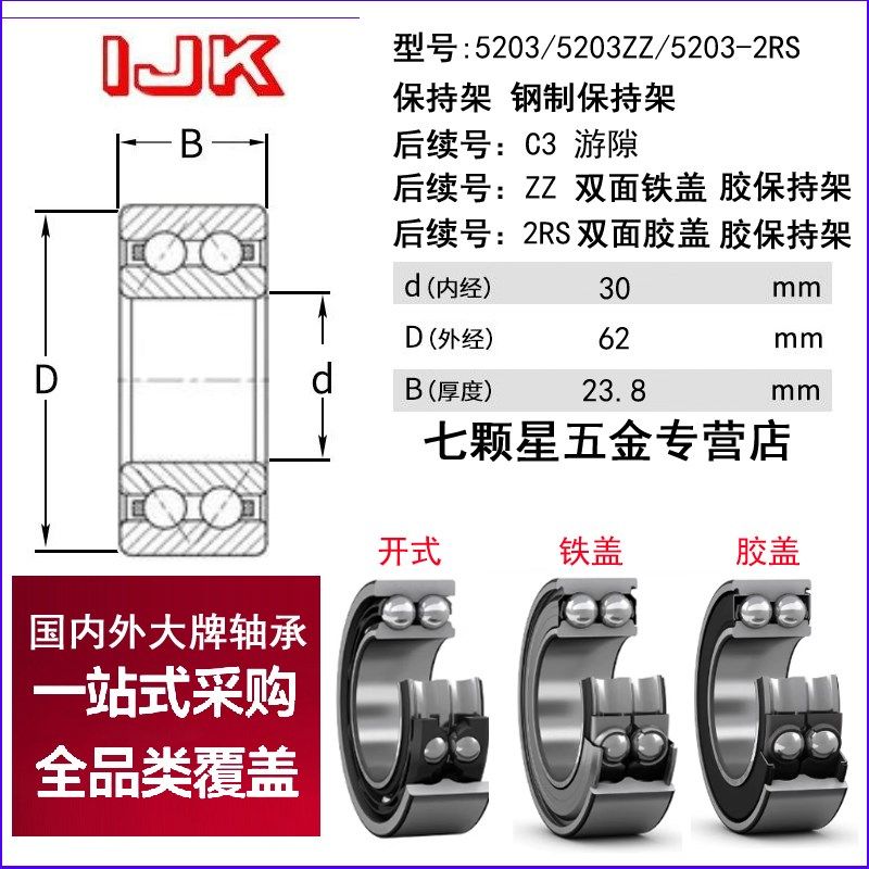 日本进口NSK双排角接触轴承5206 5207 5208 5209 5210 5211 ZZ RS