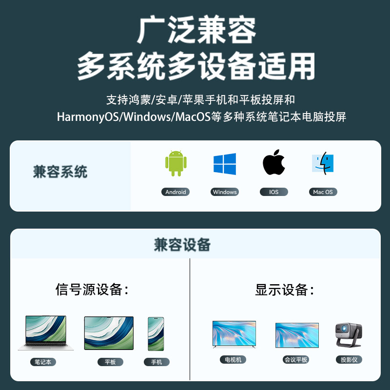 无线投屏器手机连接电视扫码即投4k同屏hdmi横竖屏转换适用5G