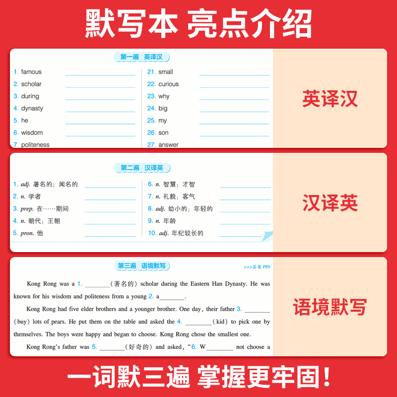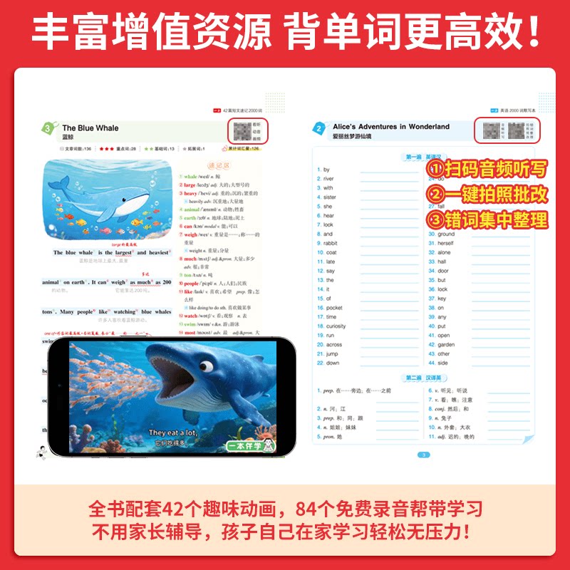 一本42篇短文速记2000词默写本英语课外阅读短文小学初中英语单词词汇2000英语词汇默写本中考单词中学教辅书配全文翻译动画音频