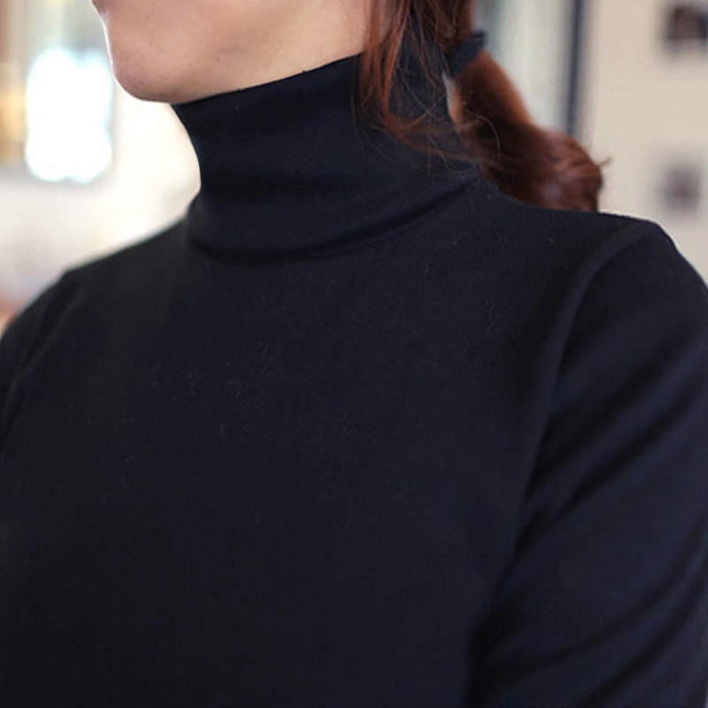 中长款纯棉翻高领堆堆长袖打底小衫磨毛加厚包臀连衣裙t恤女上衣