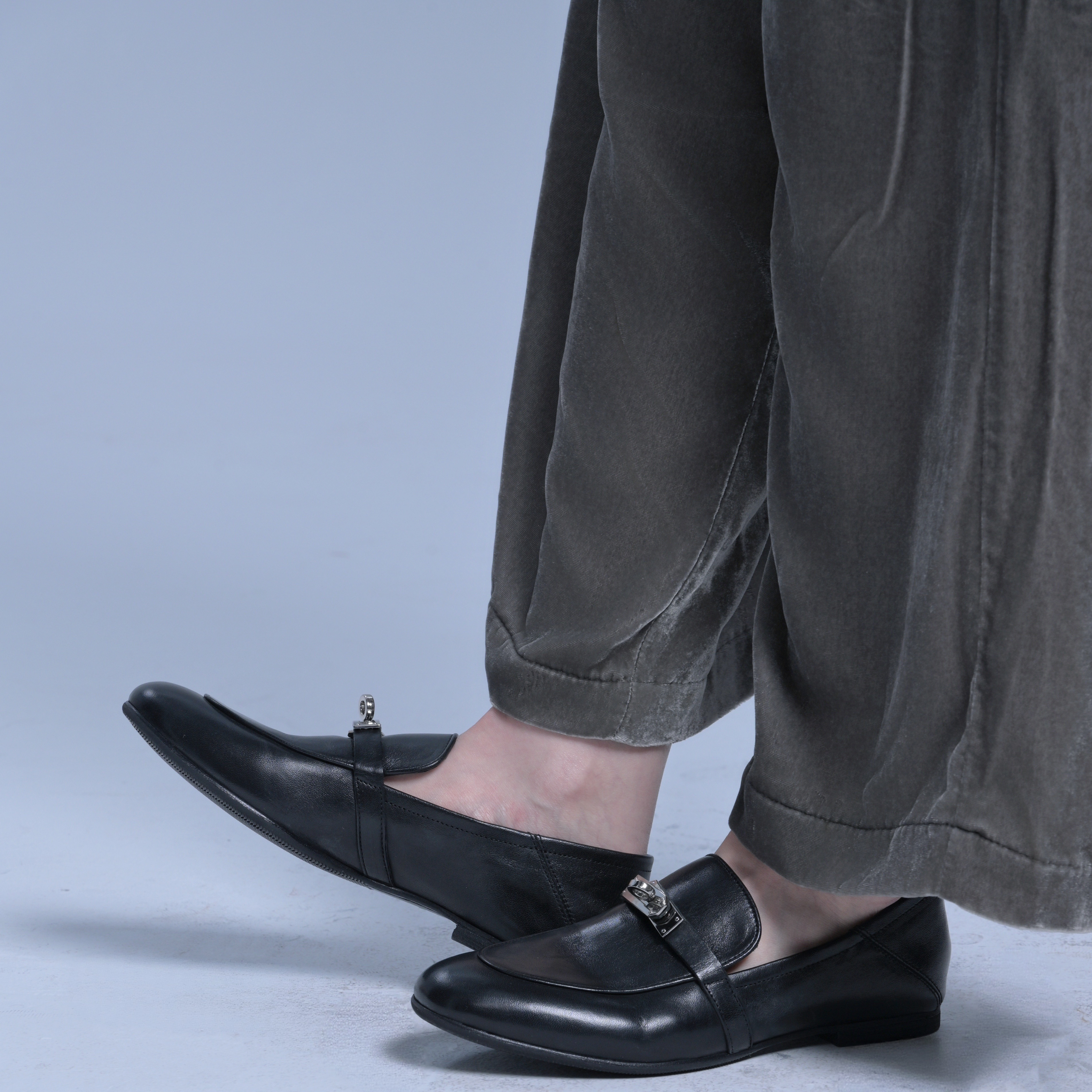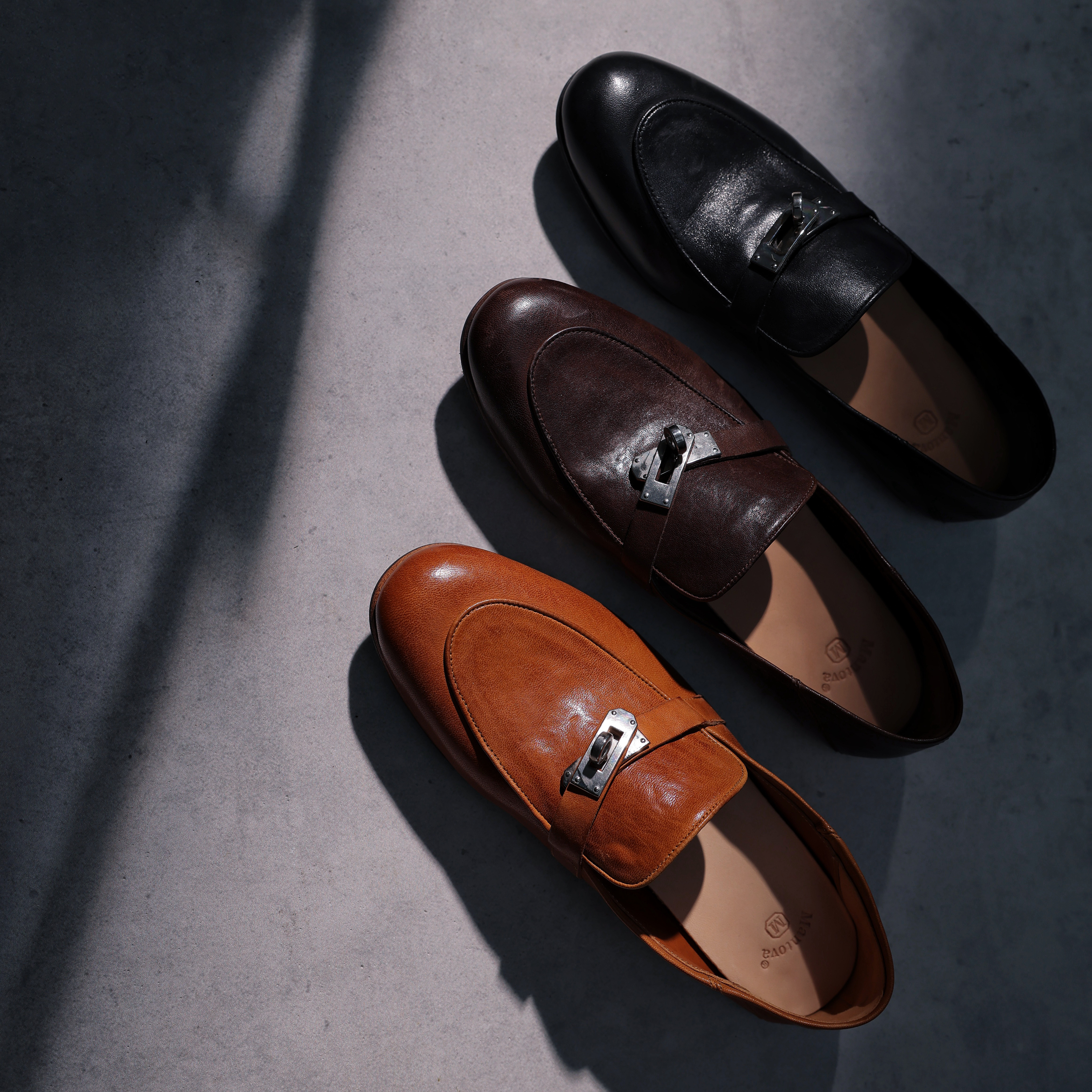 Mantova 曼托瓦春款水洗马皮锁扣乐福鞋低跟圆头浅口真皮单鞋女鞋