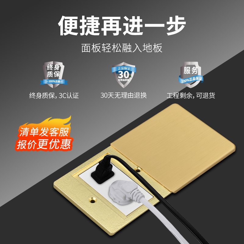 86型平推式地插 五孔电源网路地面地板地插座 防水超薄隐形隐藏式