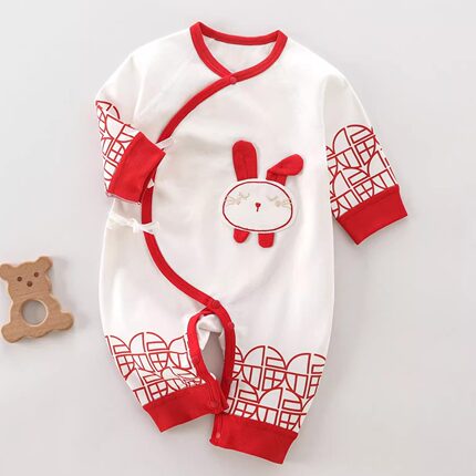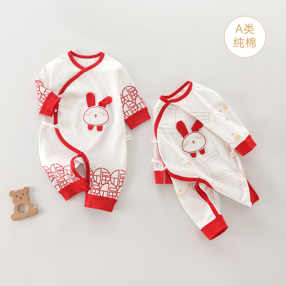 春秋满月服百天宝宝衣服婴儿连体衣男新生儿红女公主初生纯棉夏季