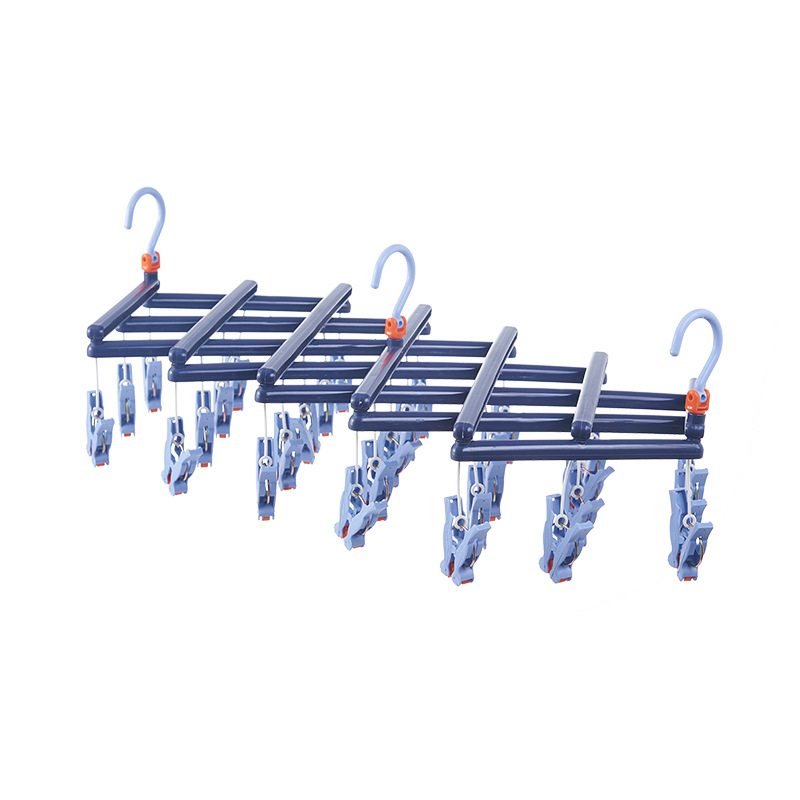 日本29夹滚轮秒收晾衣架防风多头可折叠伸缩多功能塑料创意晒衣架