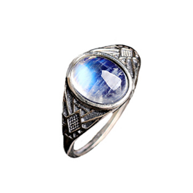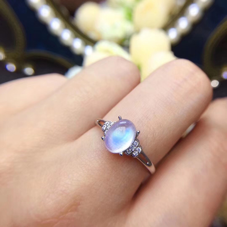捡漏天然蓝月光戒指灰白月光蓝月光石水晶戒指食指尾戒蛋面男女款