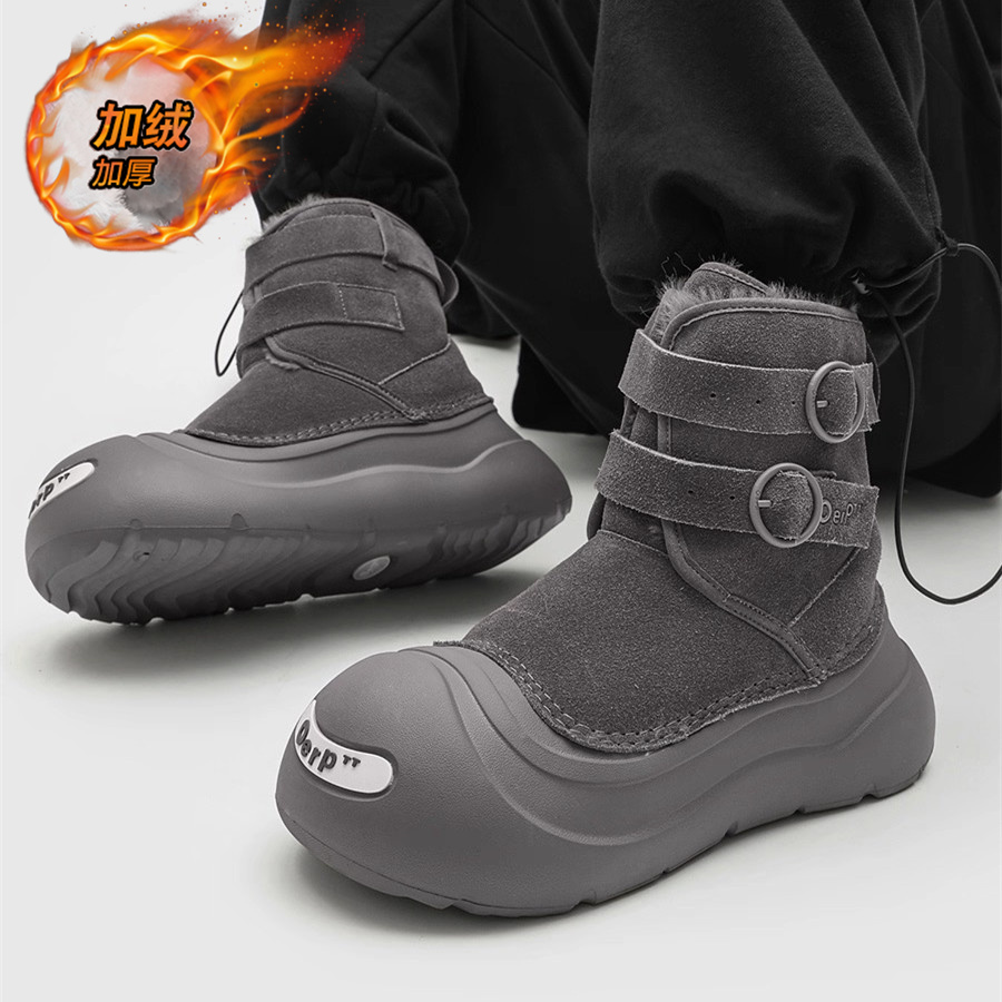 雪地靴男冬加绒加厚季开口笑丑萌大头棉鞋青少年皮毛一体休闲棉靴