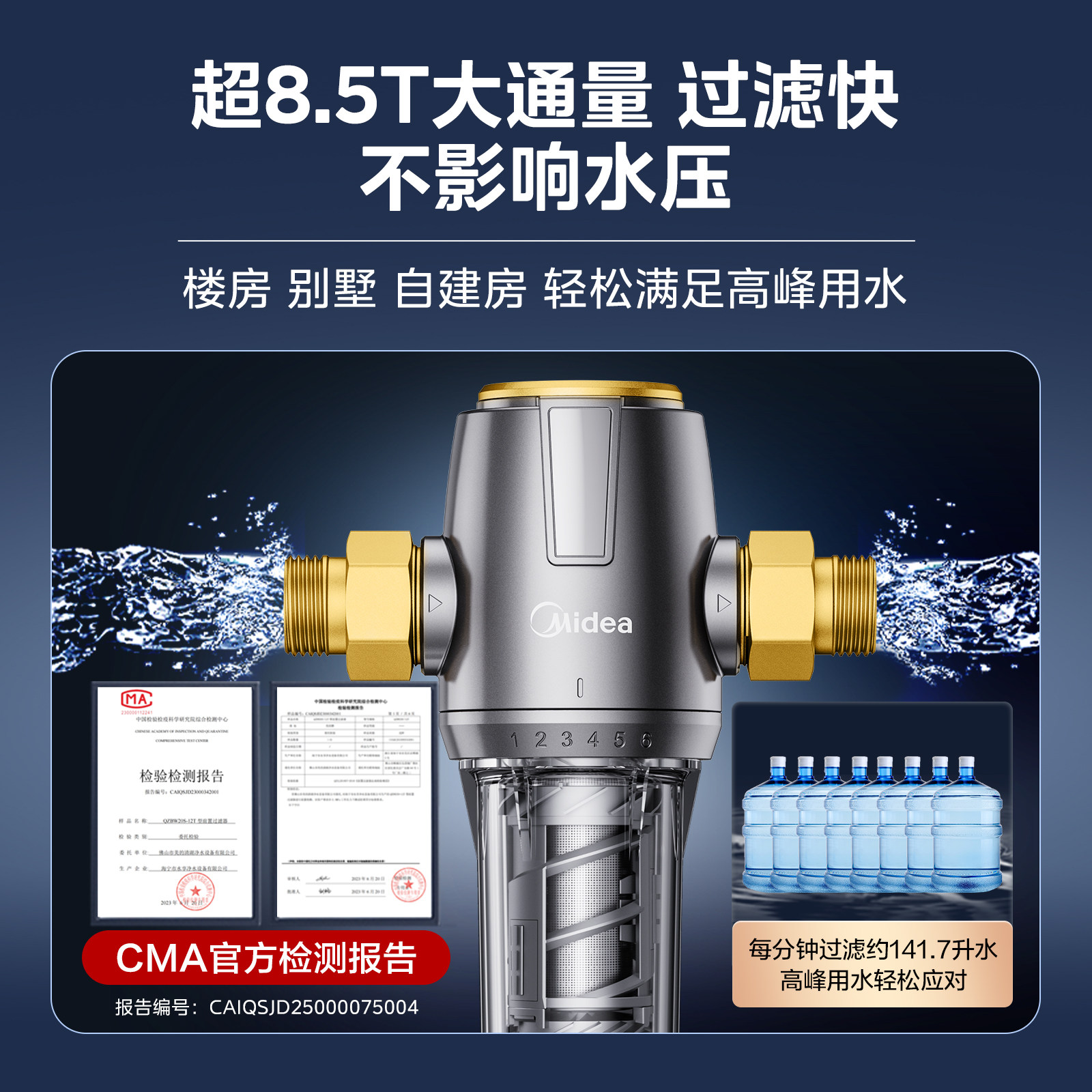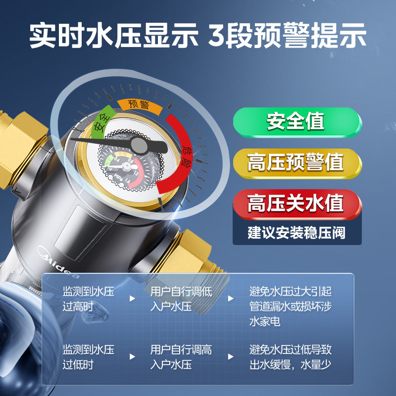 美的前置过滤器家用全自动反冲洗全铜全屋自来水旋风前置净水器