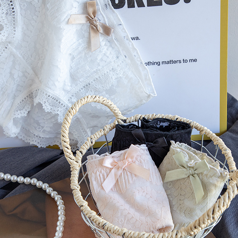 性感蕾丝无痕女士内裤花边少女蝴蝶结中腰包臀大码三角裤衩春夏