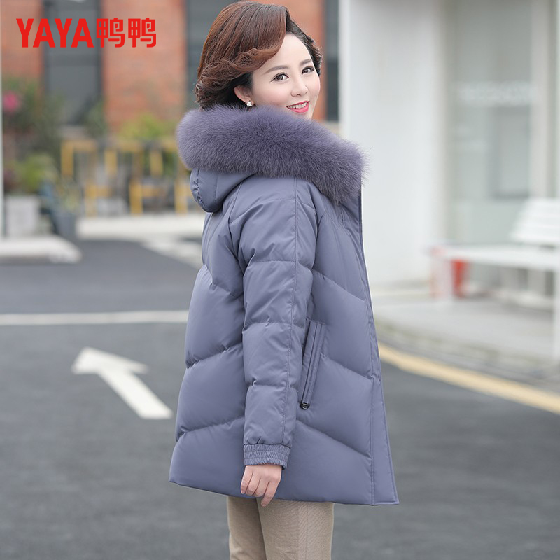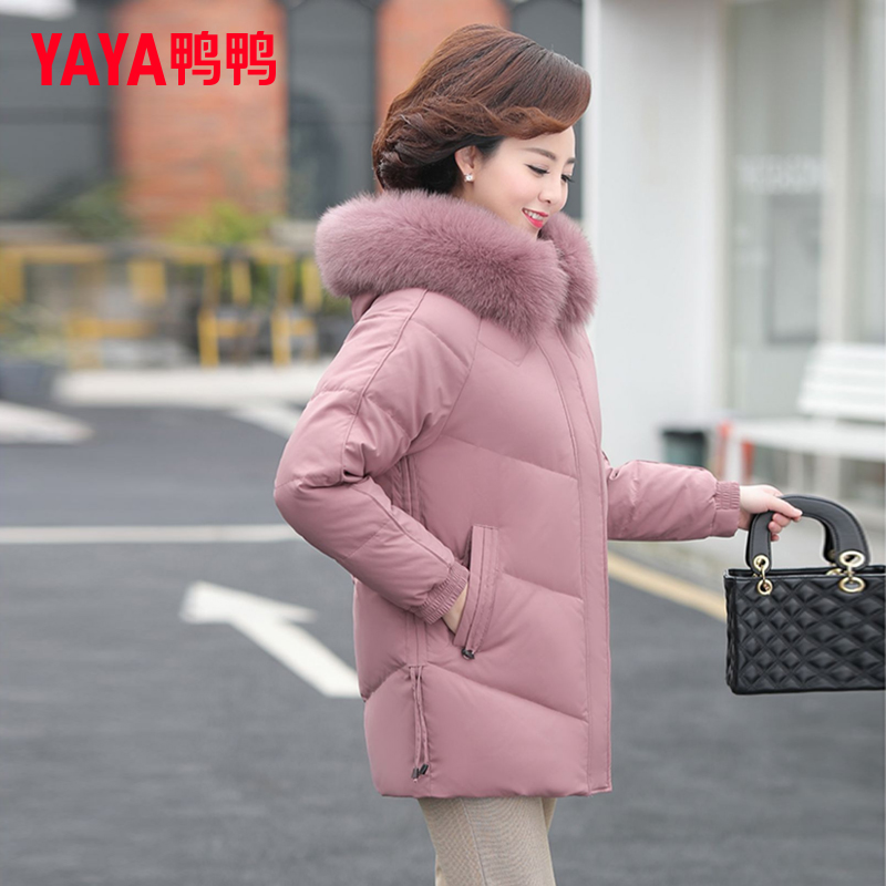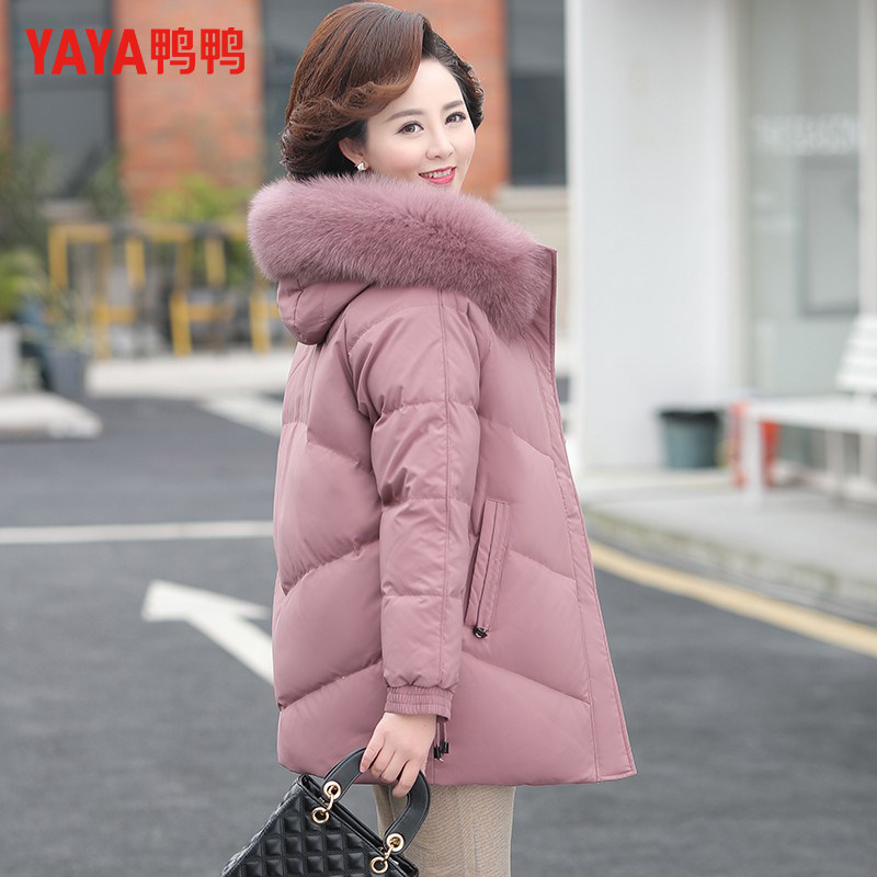 鸭鸭中年妈妈羽绒服女2024新款洋气短款冬装大码外套中老年人加厚